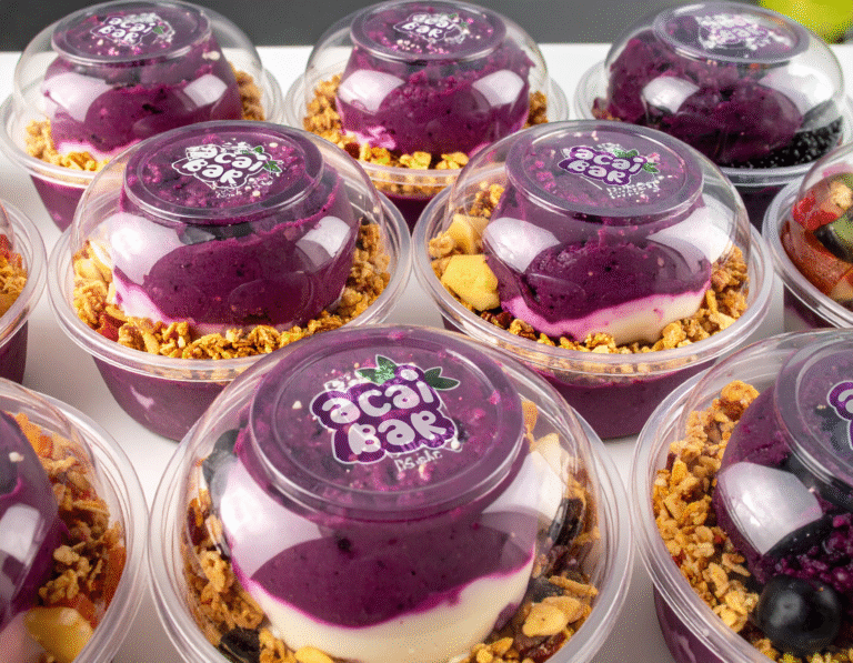 Acai Bowl to pyszna i odżywcza kombinacja mrożonych jagód acai, świeżych owoców, chrupiącego granoli i zdrowych dodatków. Idealna na śniadanie, lunch lub zdrową przekąskę.